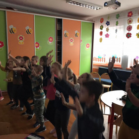 Zajęcia teatralne dla 1b pt: Jak rozśmieszyć kogoś do łez? Uczniowie mieli okazję rozwinąć swoją wyobraźnię, poznając formę sztuki aktorskiej: klaunadę. Dodatkowo wymyślali i przedstawiali na forum krótkie scenki teatralne. Zastosowali przedmioty codziennego użytku jako atrybuty do scenki teatralnej.Uczniowie trenowali czytelność ruchu.