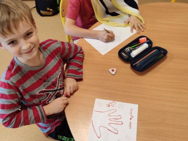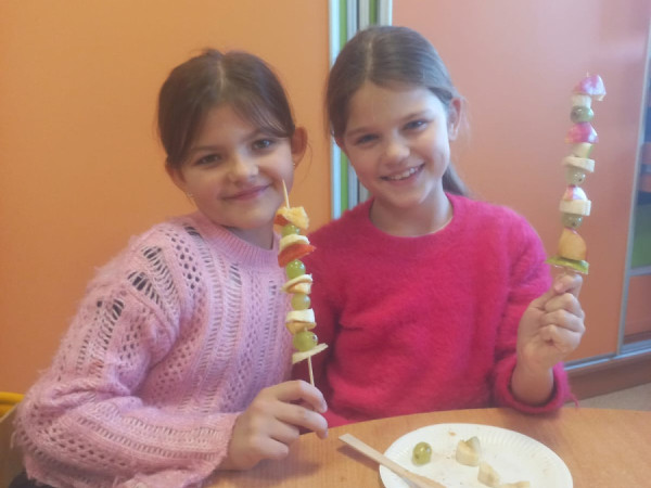 W ostatnim tygodniu października, na świetlicy odbywały się zajęcia promujące zdrowy styl życia. Świetliczaki rozmawiały o tym, jak istotne dla naszej diety jest regularne spożywanie warzyw i owoców oraz opowiedziały, które z nich smakują im najbardziej. Następnie, przy pomocy pieczątek z ziemniaka...