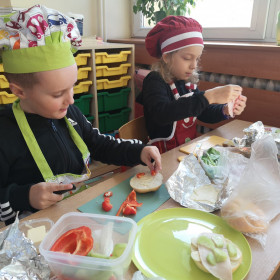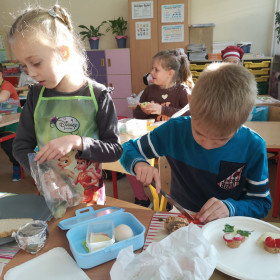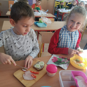 Opublikowano: 09.11.2022 8 listopada przypada Europejski Dzień Zdrowego Jedzenia i Gotowania. Z tej okazji uczniowie klasy 1a zrobili dla siebie pyszne, zdrowe i pożywne śniadanie. Pierwszaki jesteście super kucharkami i kucharzami, mniam, mniam.