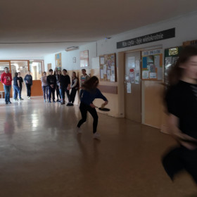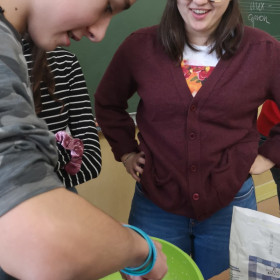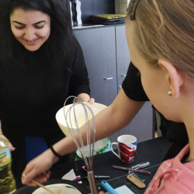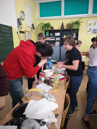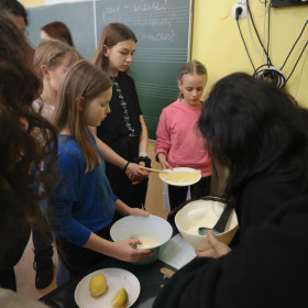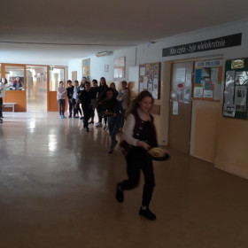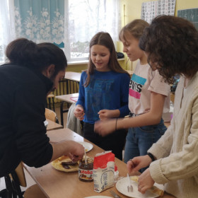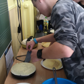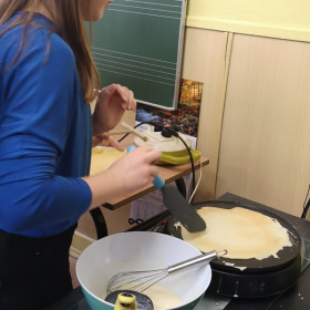 W wielu miastach odbywają się w tym dniu wyścigi z naleśnikami na patelniach. Chcąc poznać tą tradycję zaprosiliśmy wolontariuszy, którzy wraz z nami uczcili ostatni dzień karnawału. Poznaliśmy zatem historię święta i związane z tym dniem ciekawostki, urządziliśmy wyścigi z naleśnikami na patelni, które trzeba było obracać oraz sami, według przepisu w języku angielskim zrobiliśmy pyszne naleśniki.
