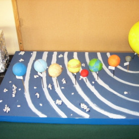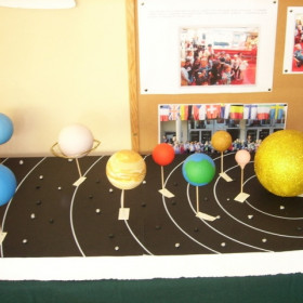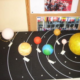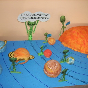 Zadaniem uczniów klas szóstych było wykonanie dowolną techniką modelu przedstawiającego budowę Układu Słonecznego.
