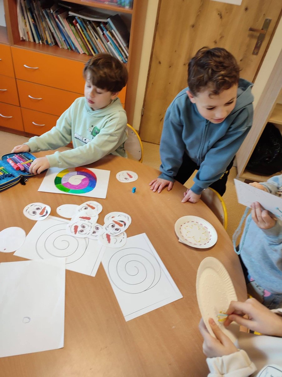 Kolorowe nitki, odrobina cierpliwości i dużo wyobraźni – tak powstały dziś w naszej świetlicy prawdziwe małe dzieła sztuki!