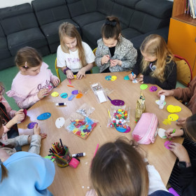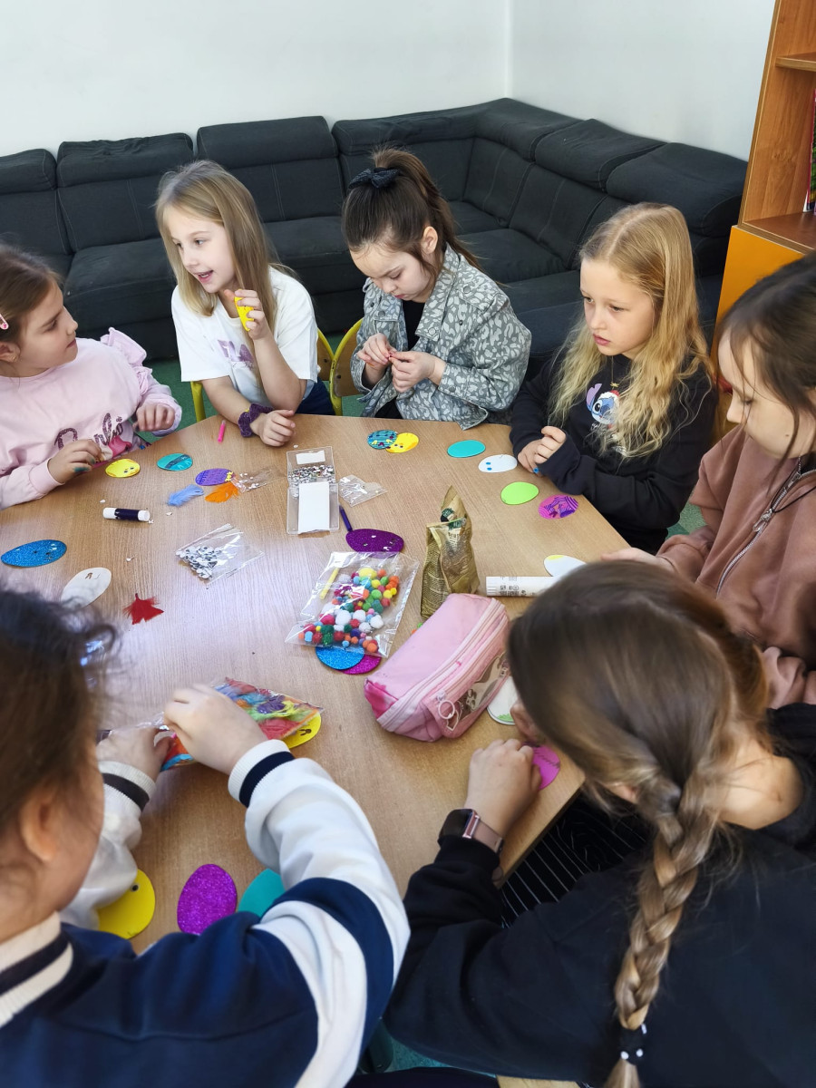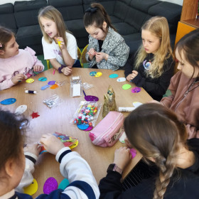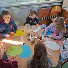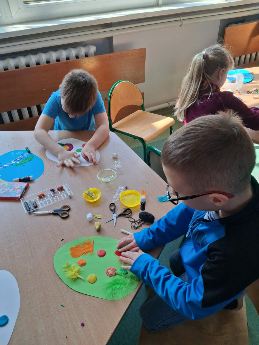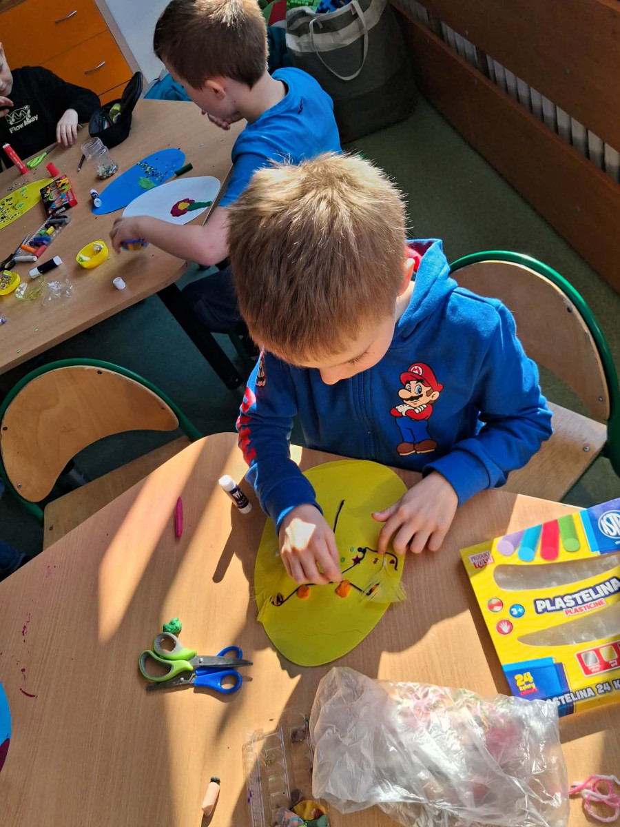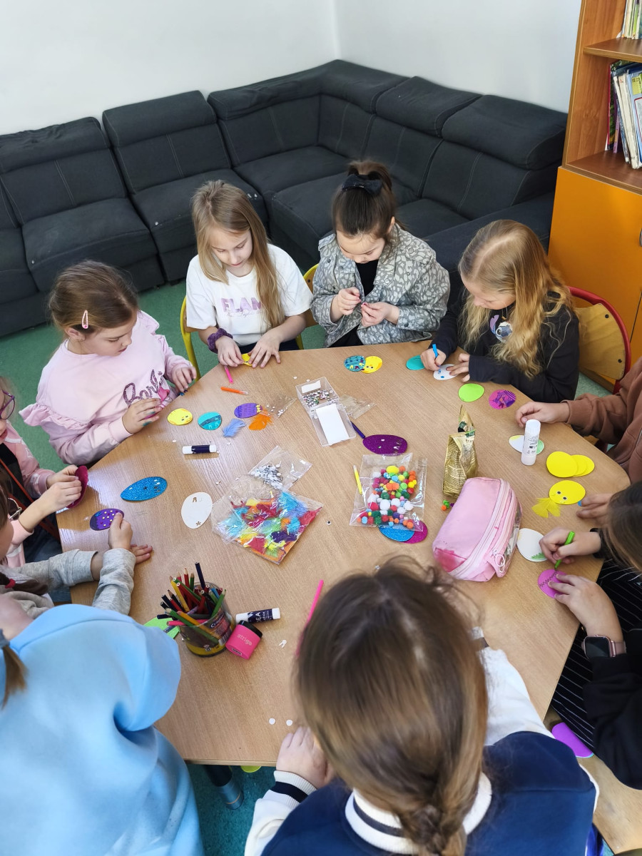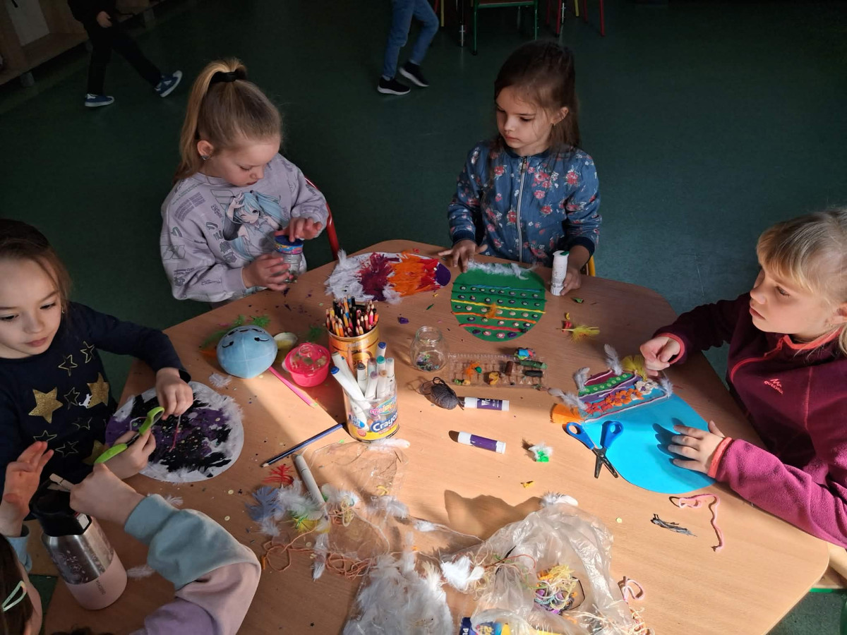 Nie zabrakło też kreatywnej zabawy z pisankami piankowymi, które uczniowie dekorują według własnych pomysłów – są brokaty, naklejki, wstążki i mnóstwo radości!