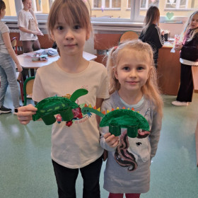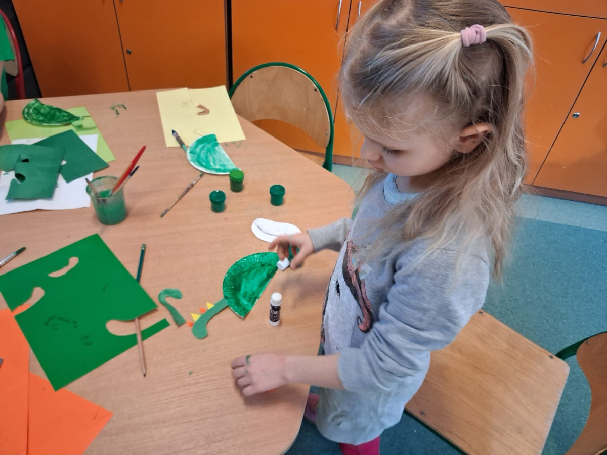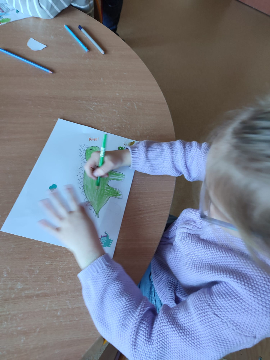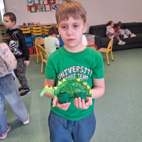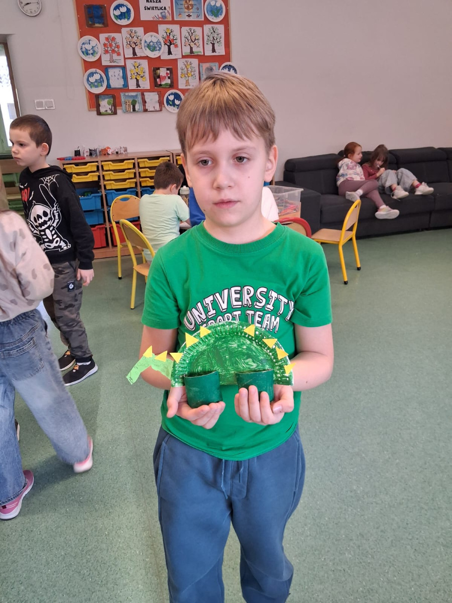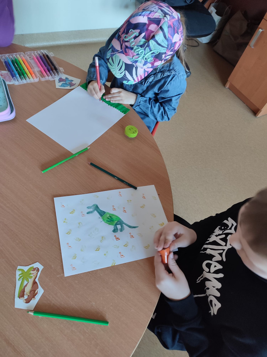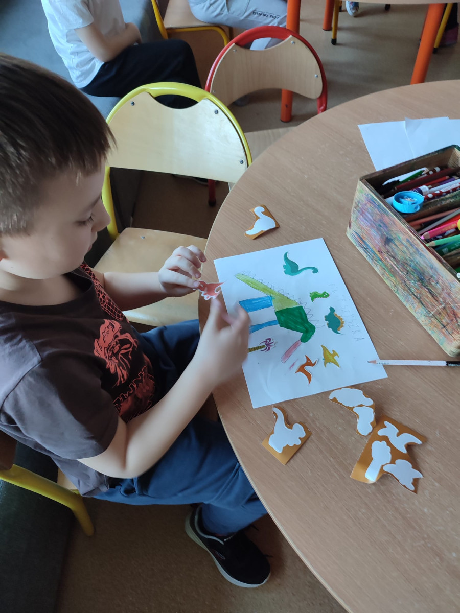 W naszej świetlicy zrobiło się dziś naprawdę jurajsko! A to dlatego, że obchodziliśmy Dzień Dinozaura. Z tej okazji przenieśliśmy się w czasie o miliony lat wstecz i zamieniliśmy w prawdziwych odkrywców prehistorycznego świata. Najpierw z ogromnym zainteresowaniem wysłuchaliśmy ciekawostek na temat tego jak żyły, czym się żywiły oraz dlaczego wyginęły te zielone stwory. Następnie przyszedł czas na prace manualne - dzieci mogły puścić wodze fantazji, tworząc dinozaury z papierowych rolek i talerzyków, rysując swoje ulubione dinozaury oraz kolorując ich podobizny. Było naprawdę zielono, prehistorycznie, a przede wszystkim ciekawie!