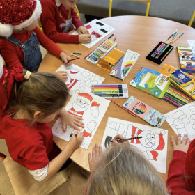 Opublikowano: 02.01.2024 Obchody "mikołajek" w świetlicy, było dużo radości i rozmów o prezentach i znaleźliśmy również czas na prace plastyczną.