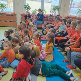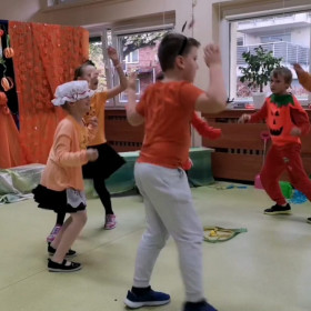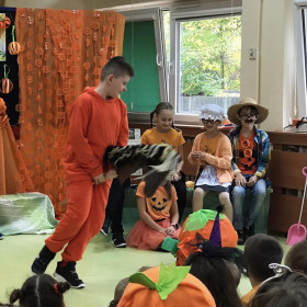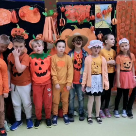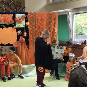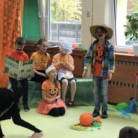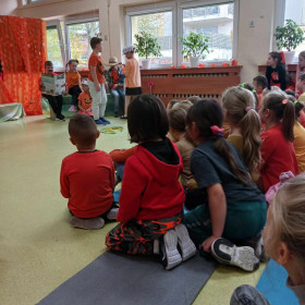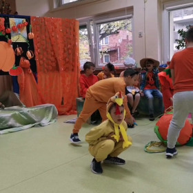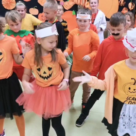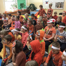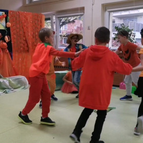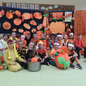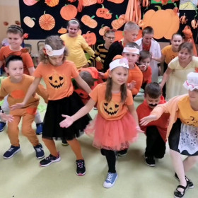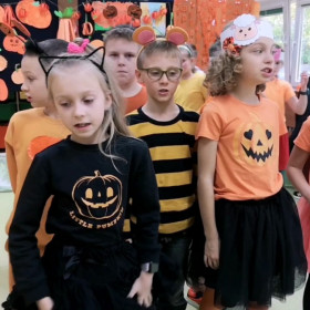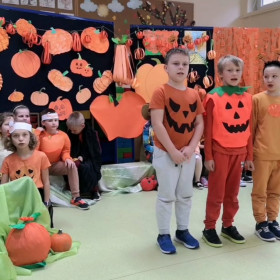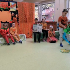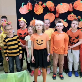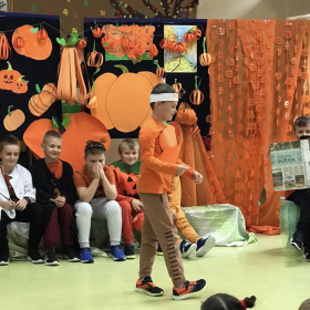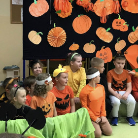 Z okazji Dnia Dyni świetliczaki z klasy 2a zaprosiły swoich kolegów na inscenizację pt. "Dynia".